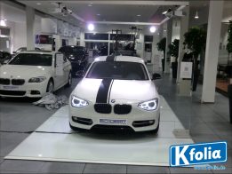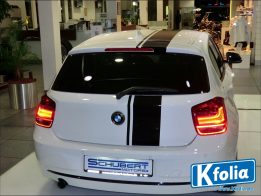 Die sogenannten Rallyestreifen sind das Tuning- Highlight schlechthin. Diesem BMW 1er verleihen die Stripes eine noch sportlichere Optik.