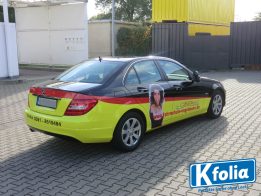 Autofolien sorgen für eine unverkennbare Optik ihres Fuhrparks, wie dieser Mercedes C-Klasse zeigt.