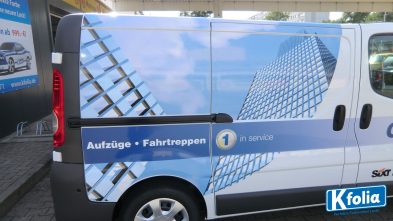 Der Aufzughersteller OTIS fährt ein Werbefahrzeug von K’folia.
