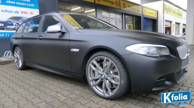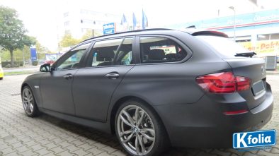 Matt ist in! Auch dieser BMW 5er Touring bekam von uns eine Vollbeklebung in schwarz-matt. Auf den Detailfotos erkennen Sie, dass unser Team äußerst präzise und sorgfältig klebt. Selbst schwierige Kanten und Ecken wer nahtlos foliert. Der Originallack und der Fahrer werden es danken.