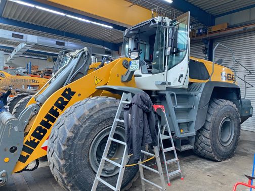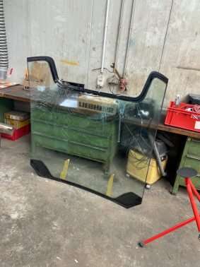 Bei diesem Liebherr 566 X Power haben wir mal fix die Frontscheibe ausgetauscht.