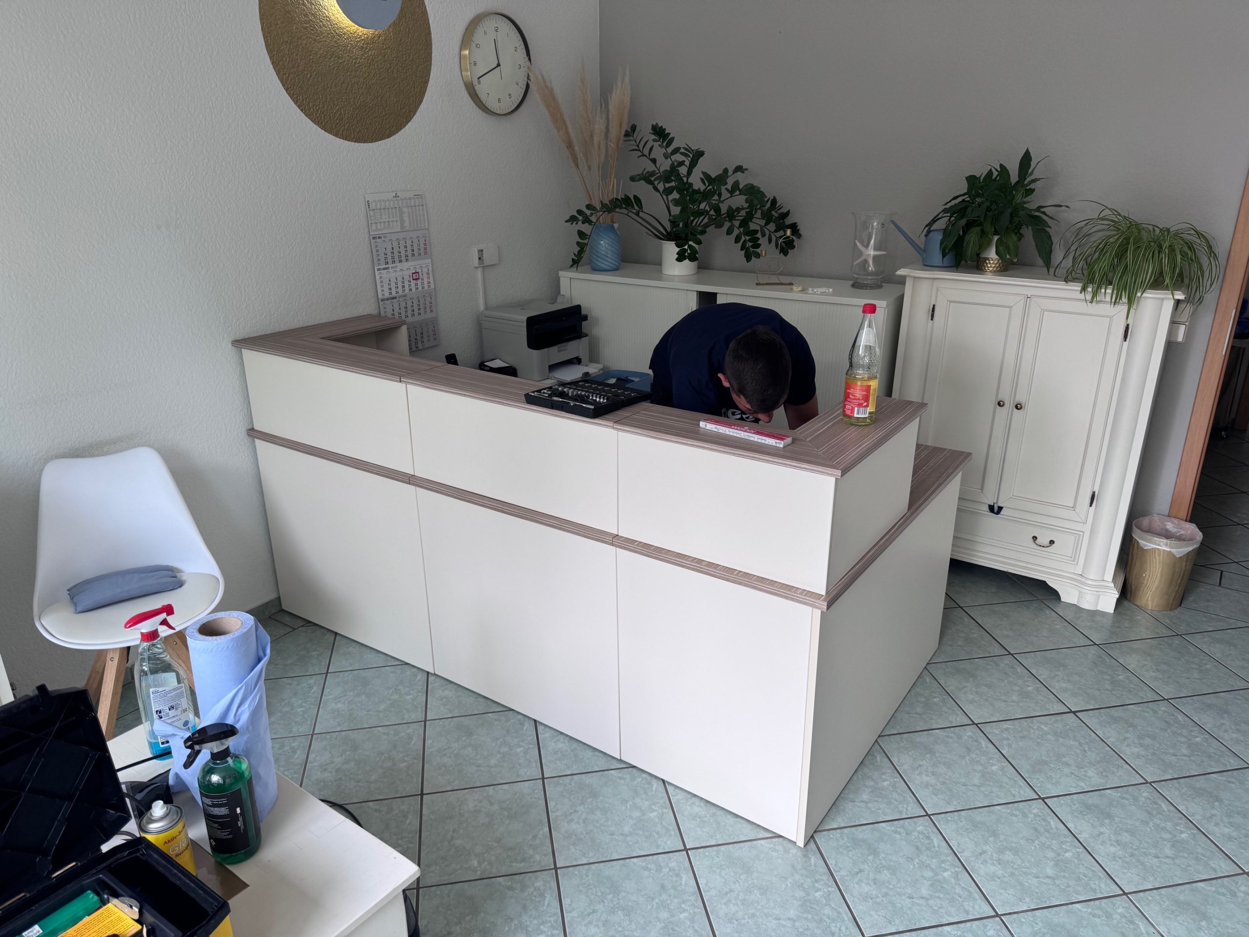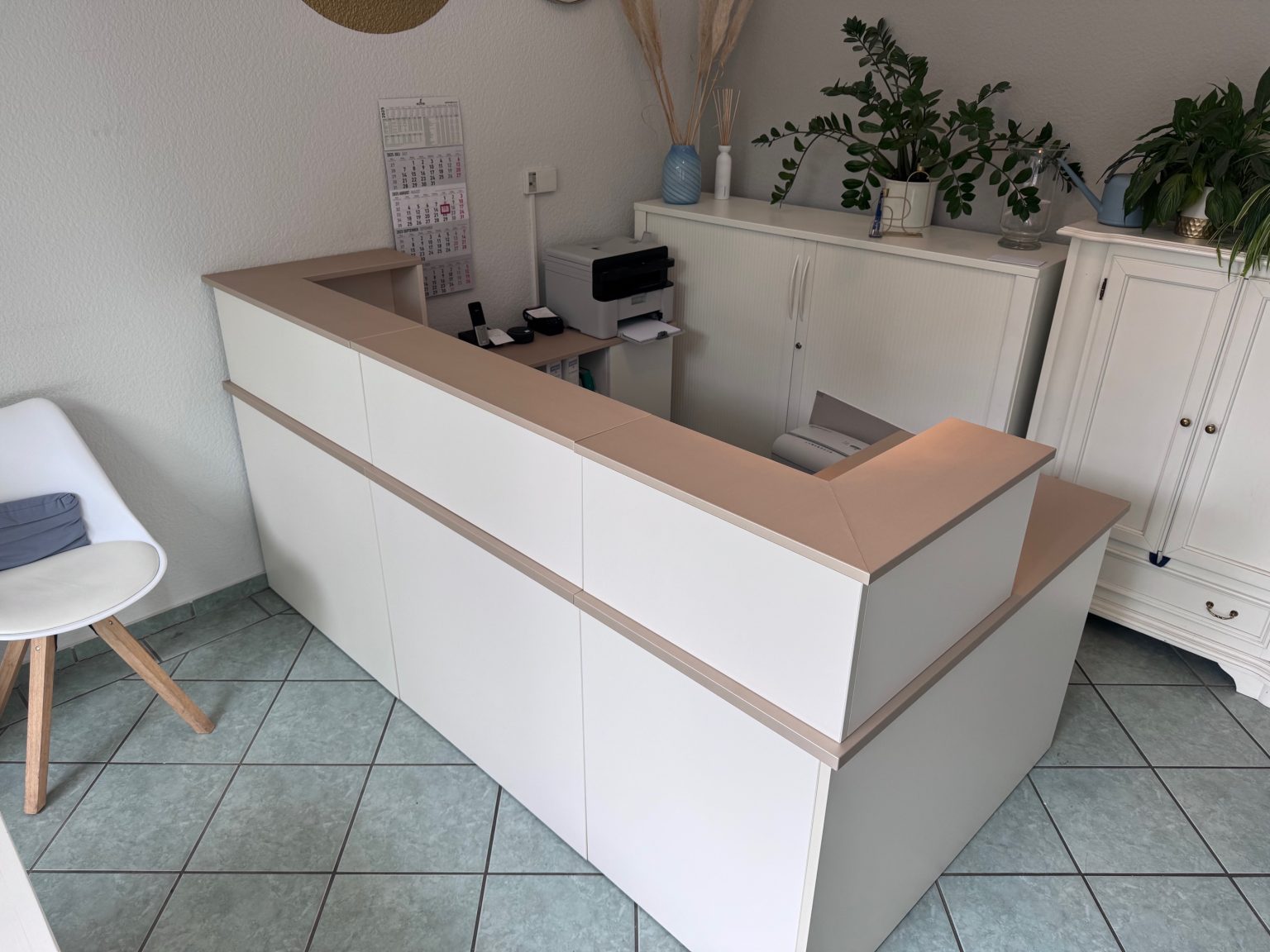 Ein Tresen ist das Erste, was Deine Kunden sehen – und genau hier haben wir in der Praxis für Gesundheit in Magdeburg angesetzt. Die alte Holzoptik wirkte etwas in die Jahre gekommen, also haben wir ihr ein stilvolles Gold matt verpasst. Das Ergebnis: Edel, modern und perfekt abgestimmt auf den freundlichen Empfangsbereich.