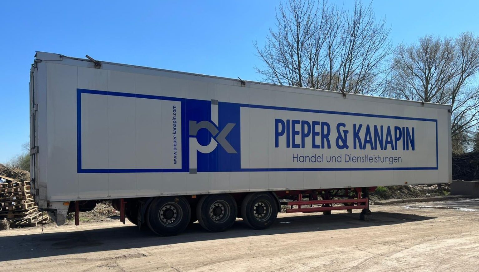 Dieser Auflieger von Pieper & Kanapin war vorher eine neutrale Fläche – jetzt ist er ein rollender Markenbotschafter! Mit einem großflächigen Digitaldruck auf Hexis HX190 Folie haben wir dem Trailer einen komplett neuen Charakter verpasst. Das Design ist schnörkellos, aber präsent: Klare Konturen, starkes Logo, prägnante Farbgebung in Blau und Grau – so geht Sichtbarkeit auf der Autobahn.