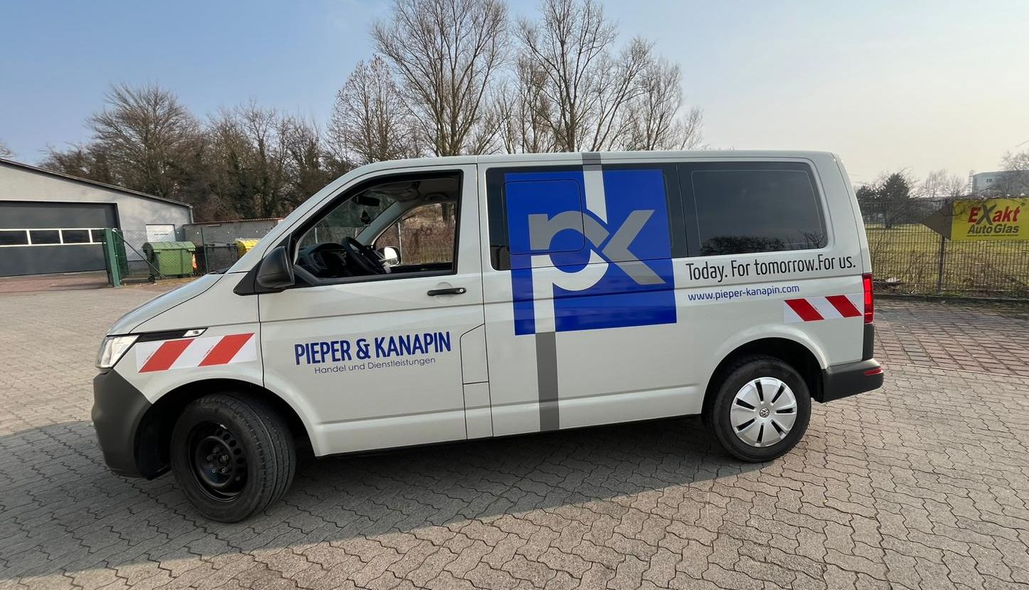 Das großflächige „pk“-Logo in Kombination mit dem Slogan „Today. For tomorrow. For us.“ macht sofort klar: Hier ist ein modernes Unternehmen unterwegs, das weiß, wie man Markenidentität auf die Straße bringt. Dabei ist die Folie nicht nur optisch ein Highlight – sie schützt auch dauerhaft den Lack und ist dabei resistent gegen UV, Schmutz und Witterung.