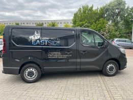 Schlichte Eleganz trifft auf maximale Wirkung: Für das Garni Hotel EASTSIDE aus Magdeburg haben wir den hoteleigenen Renault Trafic mit einer Werbefolierung nach Kundenwunsch ausgestattet. Die Highlights: hochwertige Aslan Chromfolie, kombiniert mit klarer Typografie und einem markanten Logo – auf drei Seiten perfekt platziert.